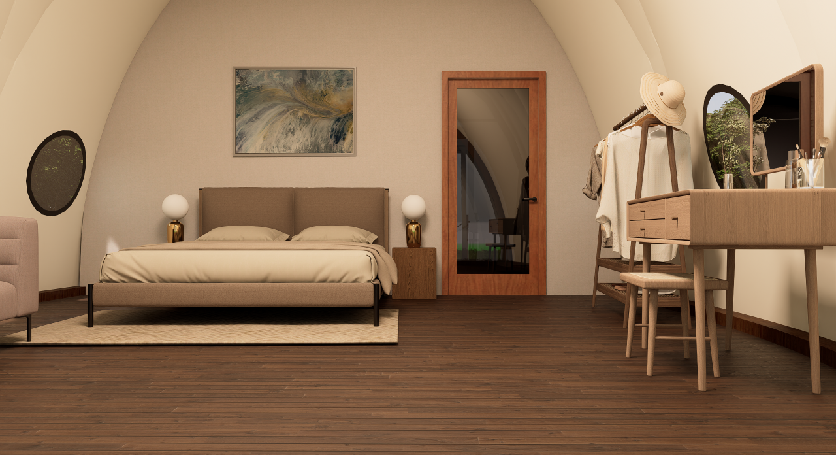 框架:优质碳钢圆管,焊接工艺 外膜:优质PVDF膜材+编织铝箔 内膜:底部1.2米户外弹力布+上方380g普通弹力布 门窗:112断桥铝合金+中空玻璃+圆形侧窗 规格:5.6*9m 套内面积:43.8㎡ 抗风等级:10级以下